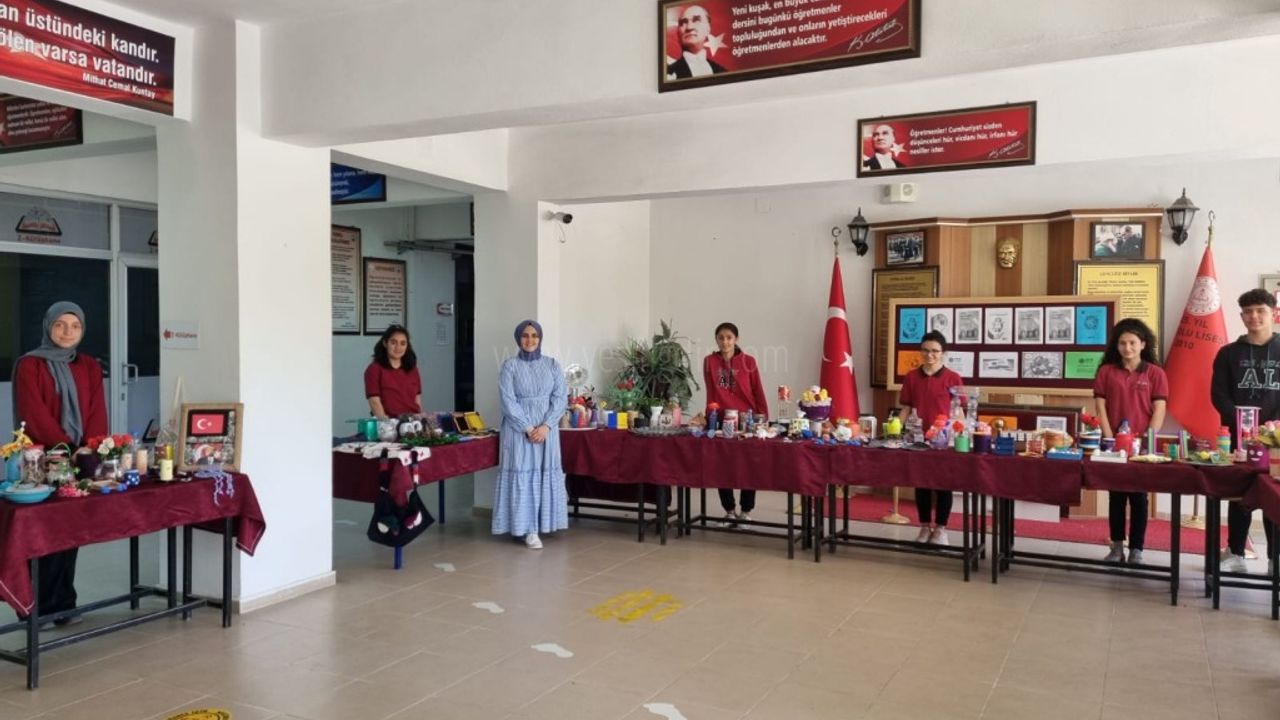 Okulun Sıfır Atık Kulübü Danışman Öğretmeni Nilgün YAĞAN"ın desteği ile öğrencilerin atıklardan yapmış oldukları süs eşyaları için okulda sergi açıldı. Kulüp Öğretmeni YAĞAN, israfın önlenmesi, kaynakların daha verimli kullanılması, atık oluşum sebeplerinin gözden geçirilerek atık oluşumunun engellenmesi veya minimize edilmesi, atığın oluşması durumunda ise kaynağında ayrı toplanması ve geri kazanımının sağlanmasını kapsayan atık yönetim felsefesini öğrencilerimize kazandırmak amacıyla böylesine güzel bir toplum hizmeti çalışması yaptıklarını belirtti. YAĞAN, öğrencilerimiz atıklardan yapmış oldukları birbirinden güzel eşyaları sergilemekle hem kendilerinin yaratıcı olduklarına hem de çevrelerinde farkındalık oluşturduklarına inanıyorum, dedi.