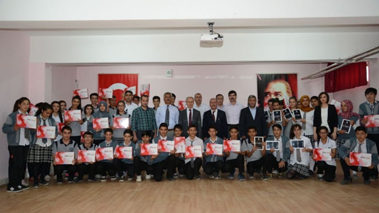 Burada bir konuşma yapan Vali Haner, söz konusu projenin Ülkemiz genelinde devam ettirilen büyük bir proje olduğunu ve dağıtılacak olan bu tablet bilgisayarlar ile bilgiye zamanında ve hızlı olarak ulaşmada öğrencilerimize son derece kolaylık sağlayacağını ifade etti. Yapılan konuşmanın ardından tabletlerin dağıtılacağı konferans salonuna geçilerek Fatih Projesi kapsamında Cumhurbaşkanı Recep Tayyip Erdoğan"ın katıldığı ve 81 ilde eş zamanlı gerçekleştirilen tablet dağıtımı için düzenlenen canlı yayın programı seyredildi. Ardından 9. sınıf öğrencilerine tabletlerini dağıtan Vali Haner, öğrencilerimize başarı temennilerinde bulundu. Tabletlerine kavuşan öğrenciler Vali Davut Haner"e ve okul idarecilerine teşekkür ettiler.