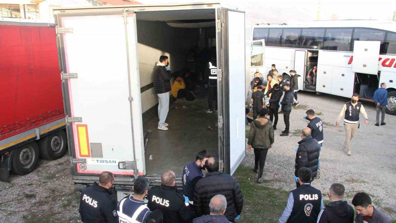 Sivas’ın Suşehri ilçesinde arama yapılan tırın dorsesinde gizlenmiş 28 kaçak göçmen bulundu.