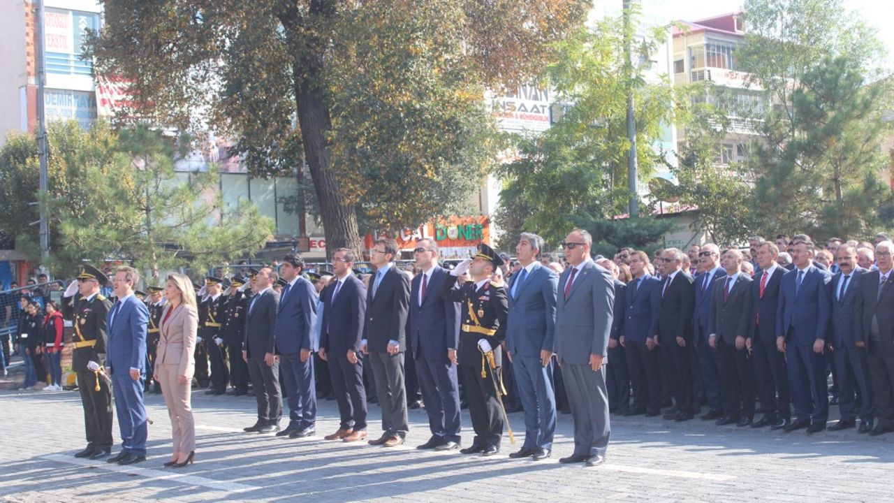 Valilik, Garnizon ve Belediye Başkanlığı çelenklerinin sunumu ile başlayan program, 1 dakikalık saygı duruşu, İstiklal Marşı''mızın söylenmesi ve Bayrağımızın göndere çekilmesi ile sona erdi.