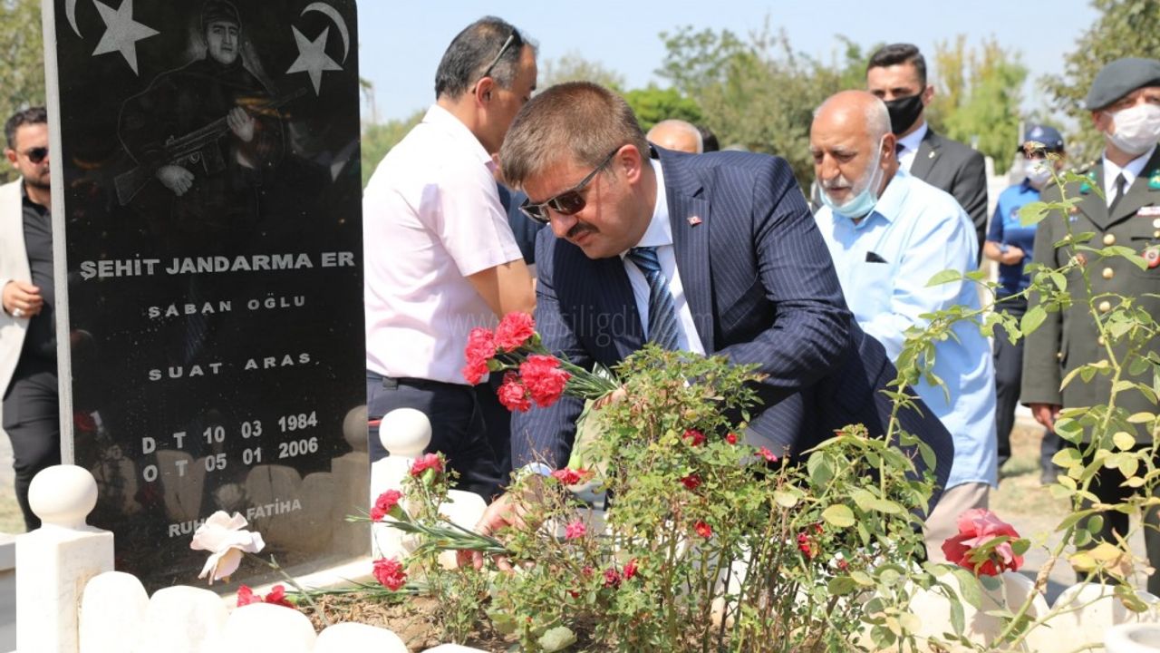 Vali H. Engin Sarıibrahim, protokol üyeleri, şehit mezarlarını ziyaret ederek karanfiller bırakarak dualar etti. Haber:A. Şıktaş