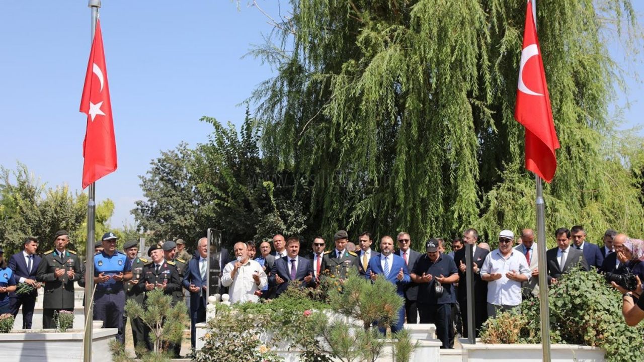 Vali/Başkan H. Engin Sarıibrahim, 30 Ağustos Zafer Bayramı"nın 100. yıl dönümü münasebetiyle Vali H. Engin Sarıibrahim, protokol üyeleri, şehit aileleri, gaziler ve vatandaşlarımızın katılımıyla aziz şehitlerimiz kabirleri başında dualarla anıldı.