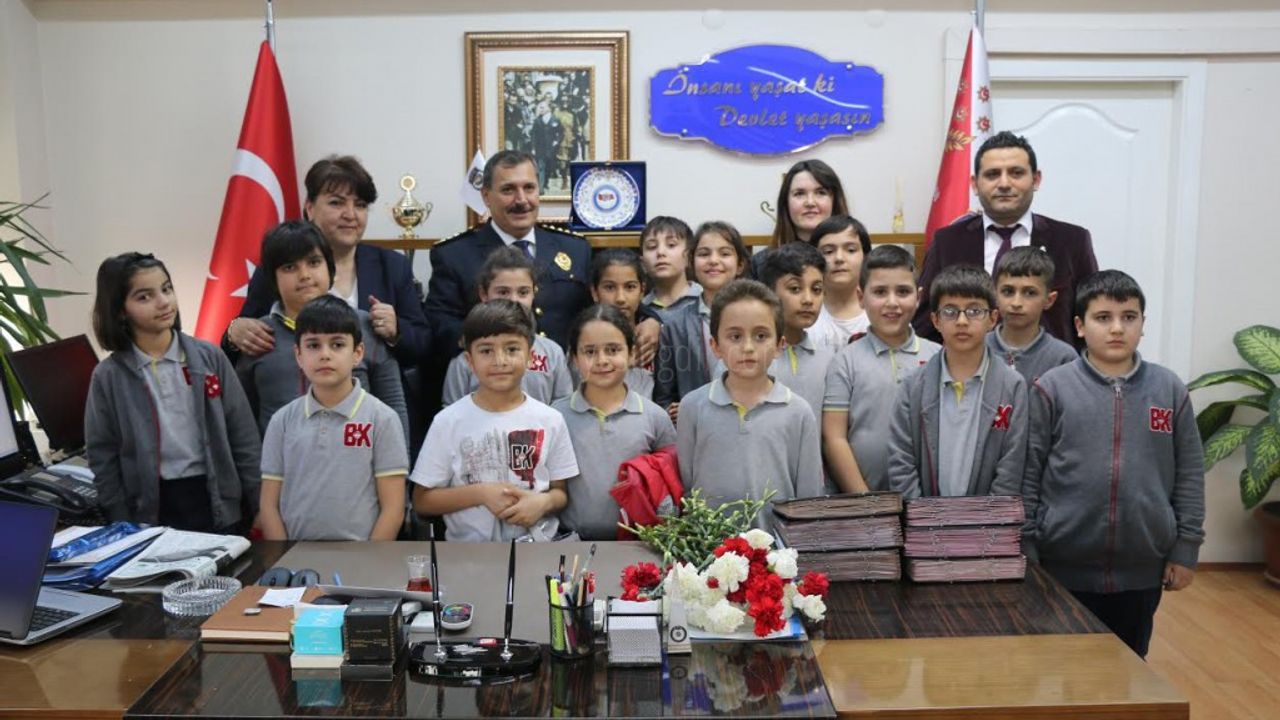 Gerçekleştirilen ziyarette; Öğrenciler, ellerinde bulunan karanfilleri İl Emniyet Müdürü Orhan ÇEVİK"e takdim ederek, Türk Polis Teşkilatının Polis Bayramı"nı kutlamışlardır.