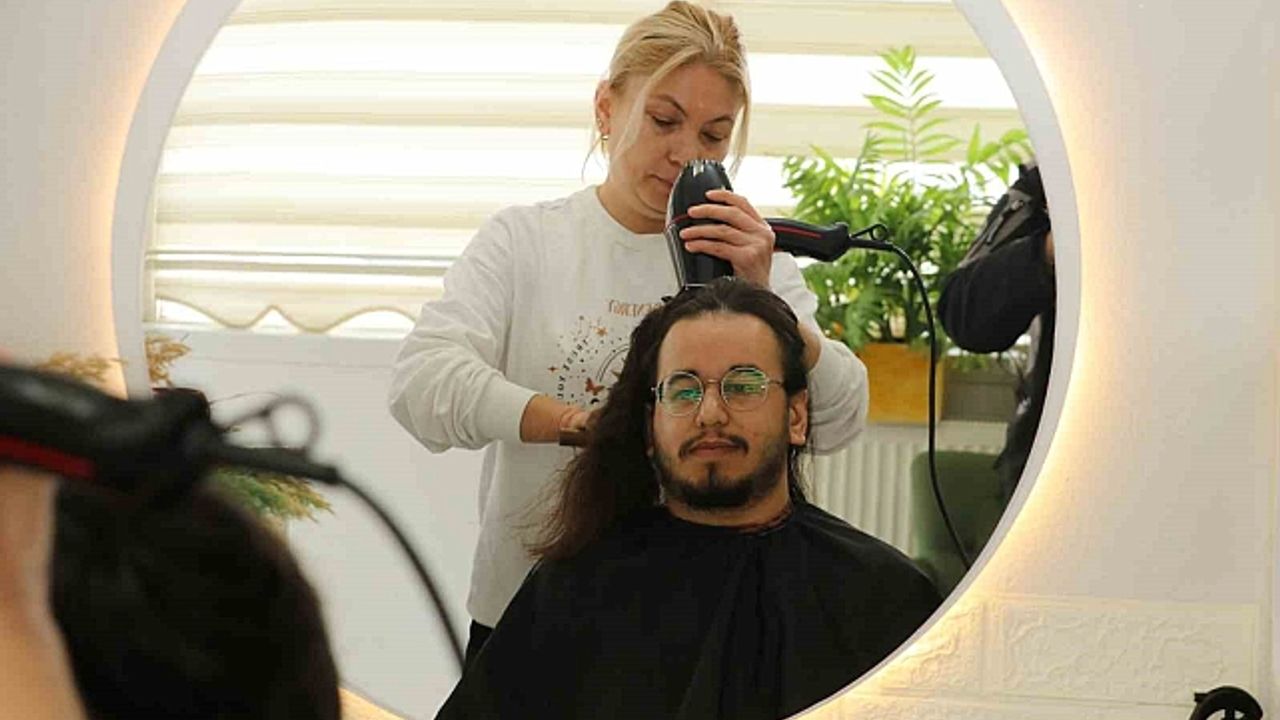25 yıllık kadın kuaförü Tülay Aytaş, "Saçlarını bağışlayacağını duyunca çok sevindim. İlk defa bir erkeğin saçlarını kesiyorum" şeklinde konuştu.
