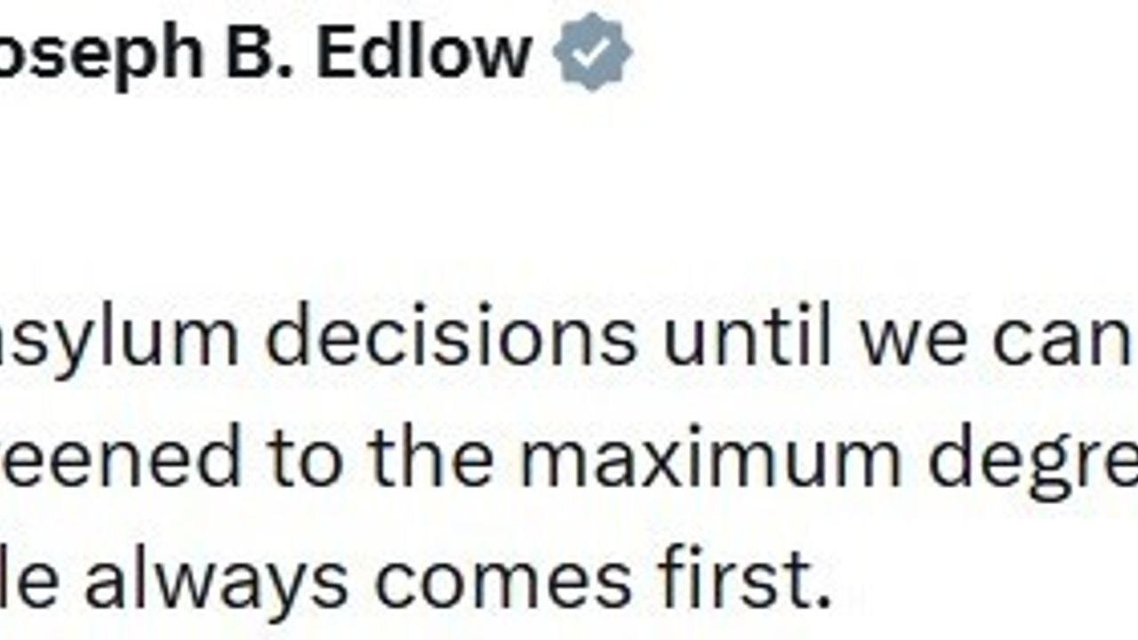 ABD Vatandaşlık ve Göçmenlik Hizmetleri (USCIS) Direktörü Joseph B. Edlow da, her yabancının mümkün olan en yüksek güvenlik düzeyinde incelenip tarandığından emin olana kadar tüm iltica kararlarının askıya alındığını duyurarak, "Amerikan halkı her zaman önce gelir" dedi.