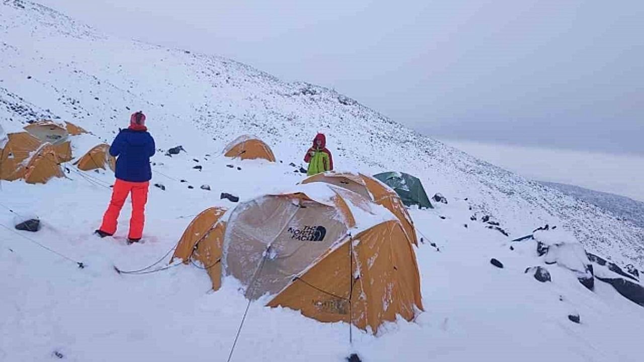 Ağrı Dağı''na tırmanmak için harekete geçen Rus ve Ukraynalı dağcılar, yoğun kar yağışı ve fırtına nedeniyle geri döndü.