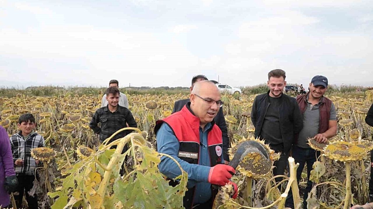 Ağrı''nın geniş tarım alanlarına sahip olduğunu ve bu nedenle tarım alanında değişik projelerle her zaman çiftçiye alternatif bir alan sunmaya çalıştıklarını belirten Ağrı Valisi Mustafa Koç, ayçiçeği projesiyle 10 bin ton verim hedeflediklerini vurgulayarak, "Ağrı''mızda yaz geldiğinden beri değişik alanlarda çiftçilerimizle beraber hasatlar gerçekleştirdik. Ağrı''mızın tarımdaki önemi, ekonomisindeki önemi son derece büyük. Geniş tarım alanlarımız, ovalarımız var. Hem çiftçilerimizin hem bu sektörle iştigal eden emekçilerimizin alın terlerinin karşılığını alabilmeleri için hem ürün noktasında verim artışı hem de ürün çeşitliliği bakımından değişik projeler yürütüyoruz. Ayçiçeği projemizde geçtiğimiz yıllardan itibaren devletimizin desteği ile Ağrı''mızın tarım ekonomisinde önemli bir yere sahip. Hem geçtiğimiz yıl hem de bu yıl hem çerezlik hem yağlık olmak üzere yaklaşık 34 bin dekar ekim alanına sahip ayçiçeğimiz. Geçtiğimiz yıl yaklaşık 10 bin ton verim elde edildi. Bu yılda yine 10 bin ton verim elde etmeyi umuyoruz. Geçen yıl ilimizin tarımsal ekonomisine kattığı değer 220 milyon TL civarında, bu yılda 310 milyon TL değerinde bir ekonomik değer bekliyoruz. Bizler her zaman çiftçilerimizin yanında olmaya çalışıyoruz. Bu sembolik tabii ama bunun manası şudur; Onlar üretmeye devam etsinler, çalışmaya devam etsinler, hem ülkemiz için hem şehrimiz için biz her konuda onların yanında olacağız. Gerek verim artışı, gerekse ürün çeşitliliği bakımından hem danışmanlık noktasında, teknik projeler noktasında, sulama noktasında ki zaten devletimizin tarımsal alana verdiği destekler ülkemiz genelinde Tarım Bakanlığımız aracılığıyla son derece önemli. Bugün de hem çiftçimize hem de emekçilerimize, kadınlarımıza kolay gelsin demek için, onlarla bu hasat sevincini paylaşmak için beraberdik. Ben bütün çiftçilerimize inşallah emeklerinin, alın terlerinin karşılığını alabilecekleri, umduklarını bulabilecekleri bir hasat sezonu diliyorum. Allah kaza bela vermesin. Bereketli olsun diyorum" şeklinde konuştu.