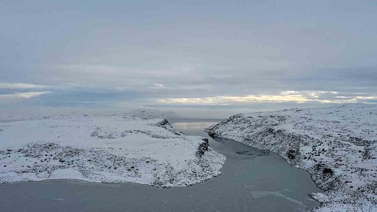 Ağrı''daki Yazıcı Barajı''nın kuzeyindeki kıyılar dondurucu soğukların etkisiyle kısmen buz tuttu.