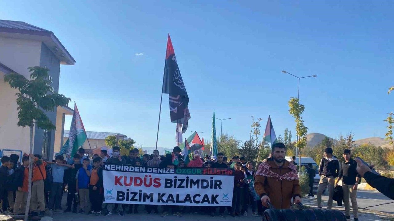 Gazze’de süren saldırılara tepki gösteren binlerce kişi, Patnos’ta düzenlenen yürüyüşte "özgür Filistin" sloganlarıyla ses yükseltti.