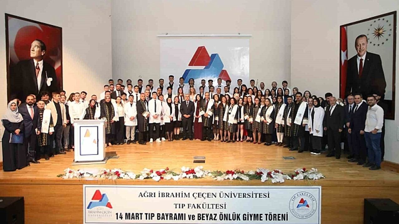 Ağrı İbrahim Çeçen Üniversitesi (AİÇÜ) Tıp Fakültesi tarafından 14 Mart Tıp Bayramı kapsamında kutlama programı düzenlendi. Programda, Tıp Fakültesi birinci sınıfta öğrenim gören 64 öğrenci beyaz önlük giydi.