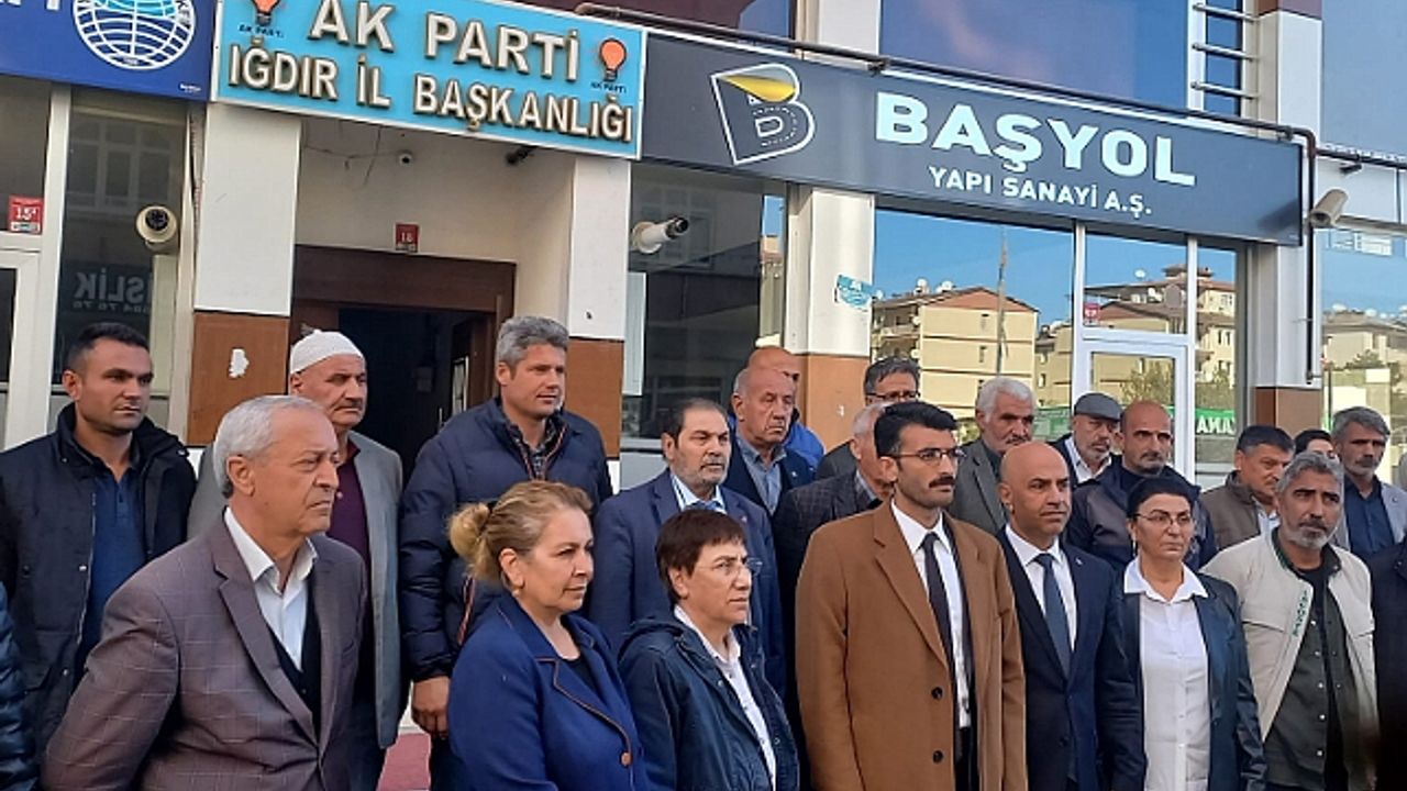 Ak Parti Tuzluca İlçe Başkanı Talip Turan ve Partililer Ak Parti İl Binası önünde basın açıklaması gerçekleştirdi.