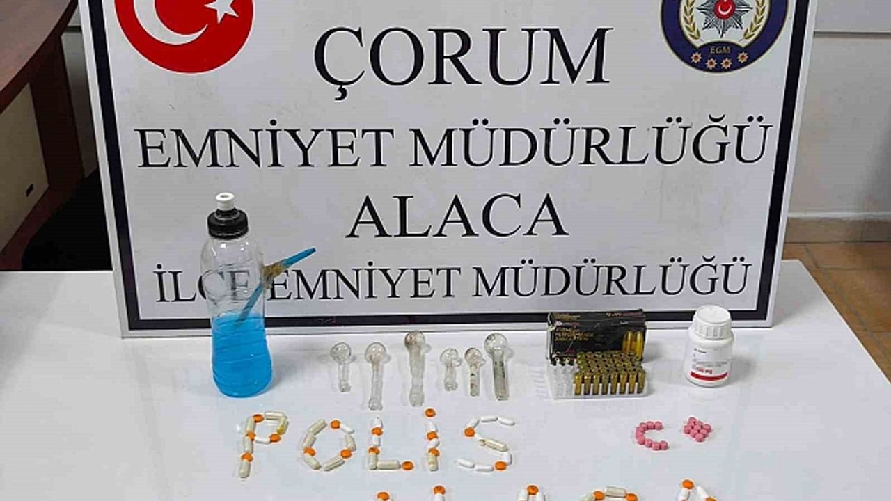 Edinilen bilgiye göre, Çorum''un Alaca ilçesinde uyuşturucu ve uyarıcı madde kullanımına ve satışına yönelik 5 ayrı adrese operasyon düzenlendi. Alaca İlçe Emniyet Müdürlüğü ekipleri, narkotik köpeği desteğiyle 5 farklı adreste arama yaptı. Ev ve eklentilerde yapılan aramalarda, 126 adet sentetik hap, 72 adet tabanca fişeği, 6 adet cam pipo ve 1 adet kova aparatı bulundu. Operasyon kapsamında E.B., K.M., G.G., S.B. ve Y.K. gözaltına alındı. Şüpheliler hakkında adli işlem başlatıldı.
