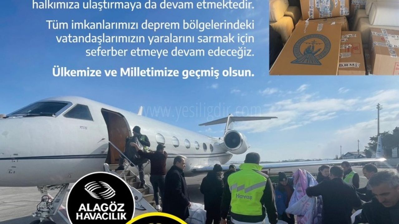 Bugün de yaptığı açıklamada Alagöz Holding ve Zafer Havacılık işbirliği ile deprem bölgesindeki vatandaşlarımızın Ankara"ya ulaştırıldığı açıklandı.