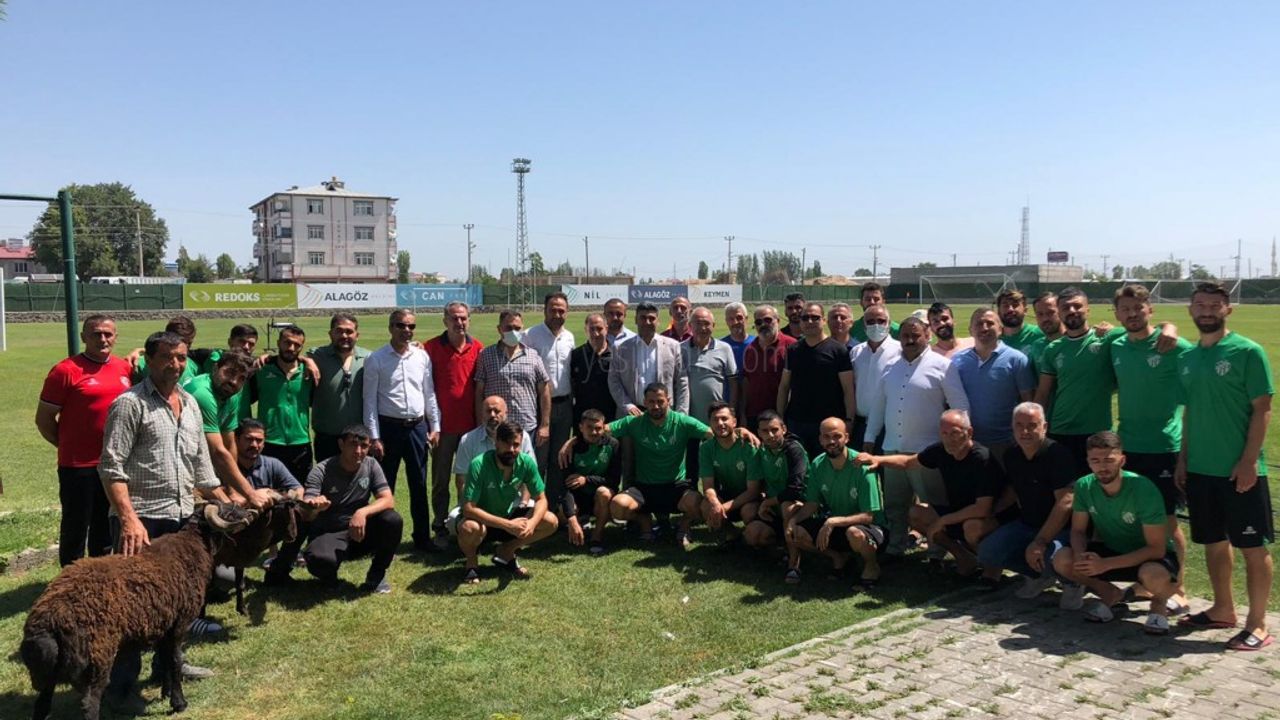 Geçtiğimiz hafta Erzurum Ilıca spor"u sahasında mağlup eden ve haftanın şampiyonu olan 76 Iğdır Belediye Spor"u sahasında ziyaret eden İl Başkanı Ali Kemal Ayaz kurban kesti ve takıma başarı diledi.
