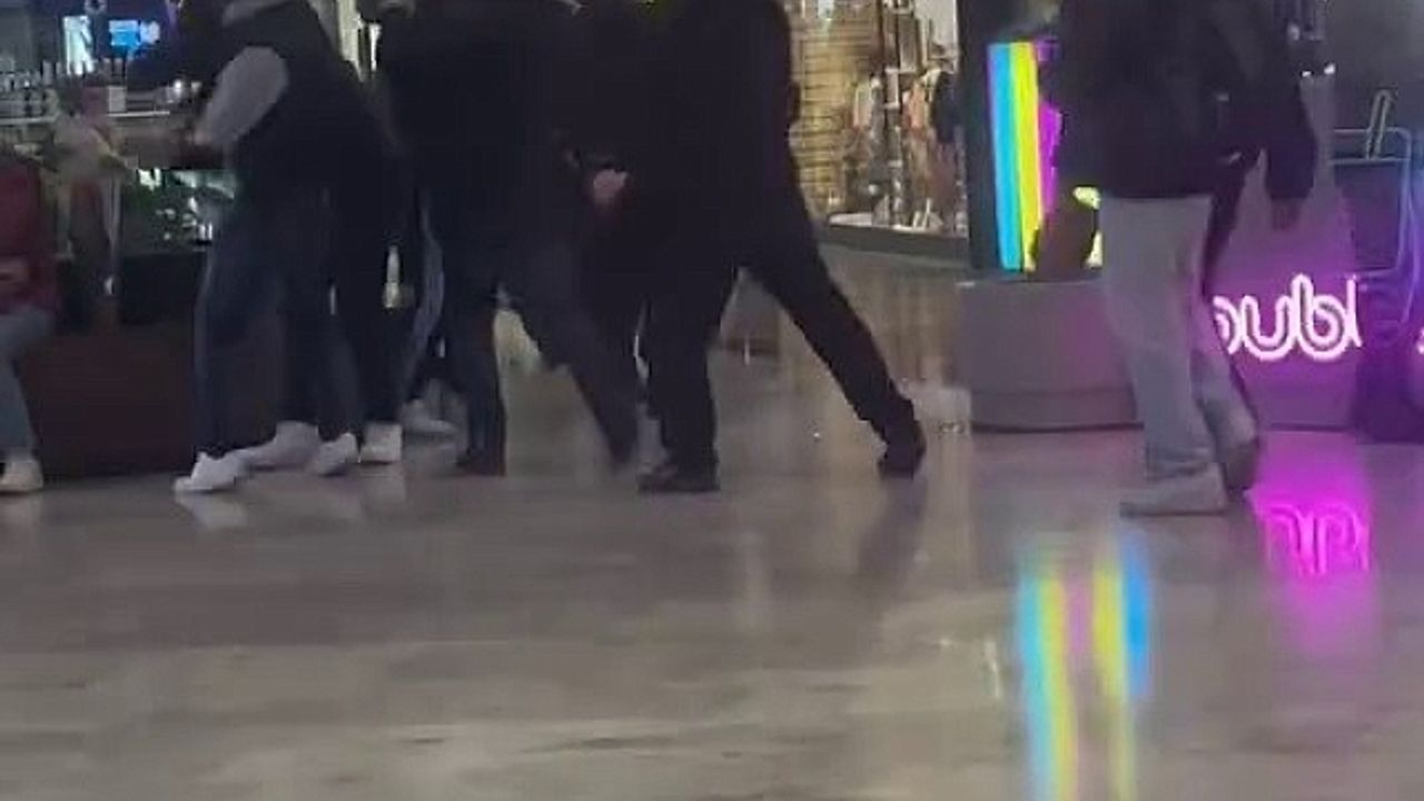 Bursa''da bulunan bir alışveriş merkezinin içinde 2 grup tekme tokat kavga etti. O anlar amatör kamera ile kaydedildi.