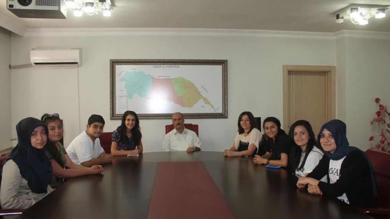 Okul Müdürü Şengül Yıldız, öğretmen Nazire Güneş,Erhan Yıldırım ve bir gurup öğrenci Milli eğitim müdürü Hakan Cırıt"i ziyaret ettiler.
