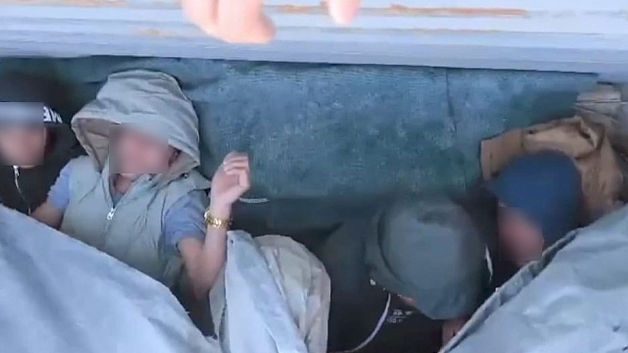 Amasya''nın Merzifon ilçesinde polisin durdurduğu tırın dorsesinde 10 kaçak göçmen yakalandı.