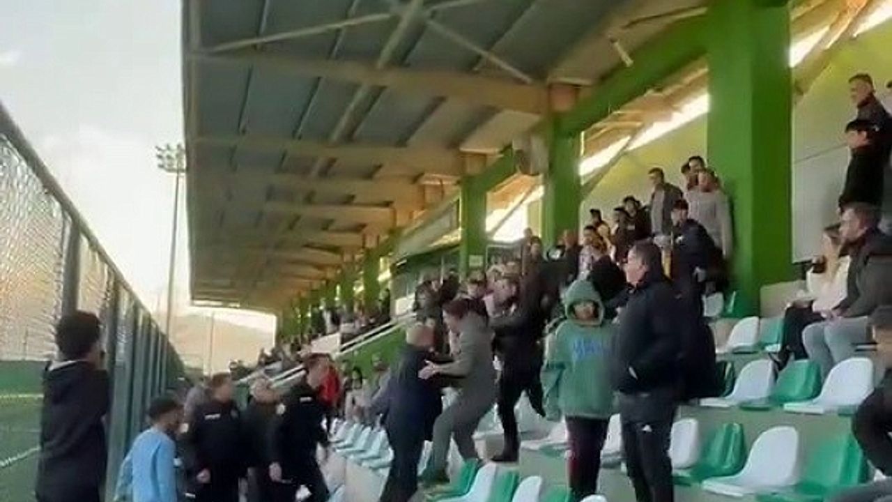 Bursa''da oynanan amatör bir futbol müsabakasında tribünler adeta boks ringine döndü. Kavga polis ekiplerince güçlükle ayrıldı. Bazı taraftarlar ise kavga esnasında maç izlemeye devam etti.