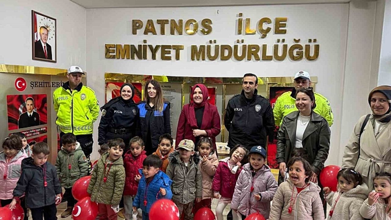 Ağrı''nın Patnos ilçesi Babaocağı ve Küçük Mucitler Anaokulu öğrencileri ve öğretmenleri, 10 Nisan Polis Haftası dolayısıyla İlçe Emniyet Müdürlüğünü ziyaret etti.