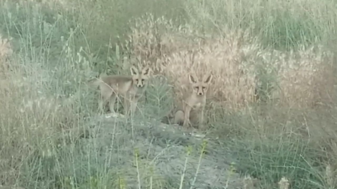 Bayburt''un Demirözü ilçesi kırsalında, yuvalarının başında annelerinin yiyecek getirmesini bekleyen iki yavru tilki görüntülendi.