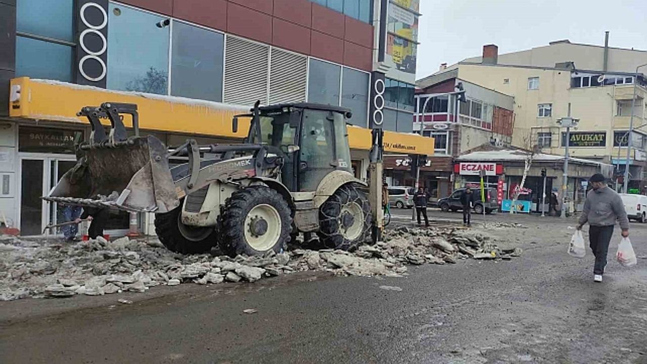 Ardahan´da havaların yumuşamasıyla caddelerdeki buzlar temizleniyor. Yollardan kaldırılan buzlar, belediye ekipleri tarafından şehir dışına taşınıyor.