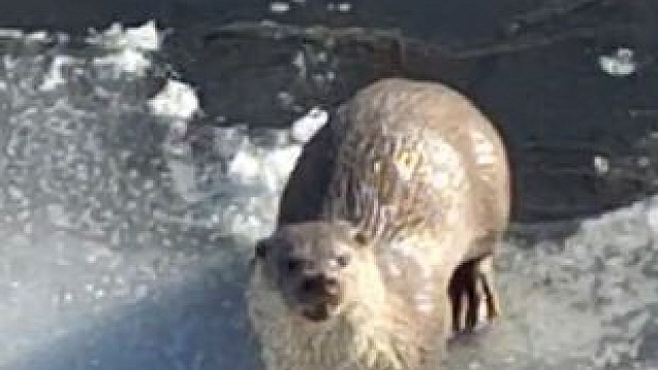 Kısa bir süre buz üstünde ilerleyen su samuru tekrar Kura nehri''ne dalarak gözden kayboldu.