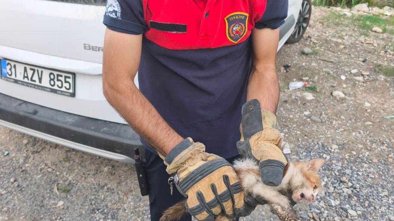 Hatay’da aracın kaput kısmına girerek mahsur kalan yavru kedi, itfaiye ekipleri tarafından kurtarıldı.