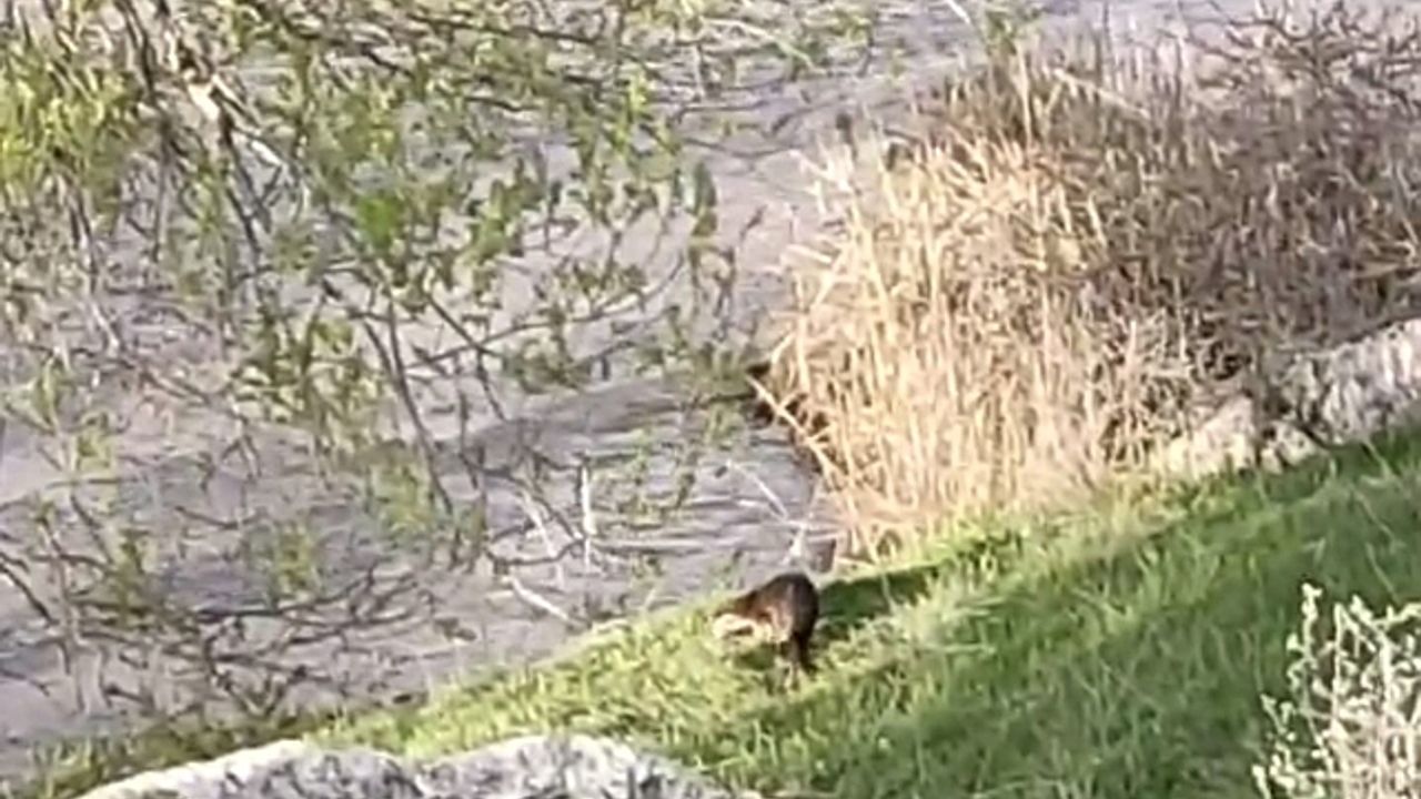 Nesli tehlike altındaki su samuru Erzurum''un Aşkale ilçesinde nehirde balık avlarken görüntülendi.