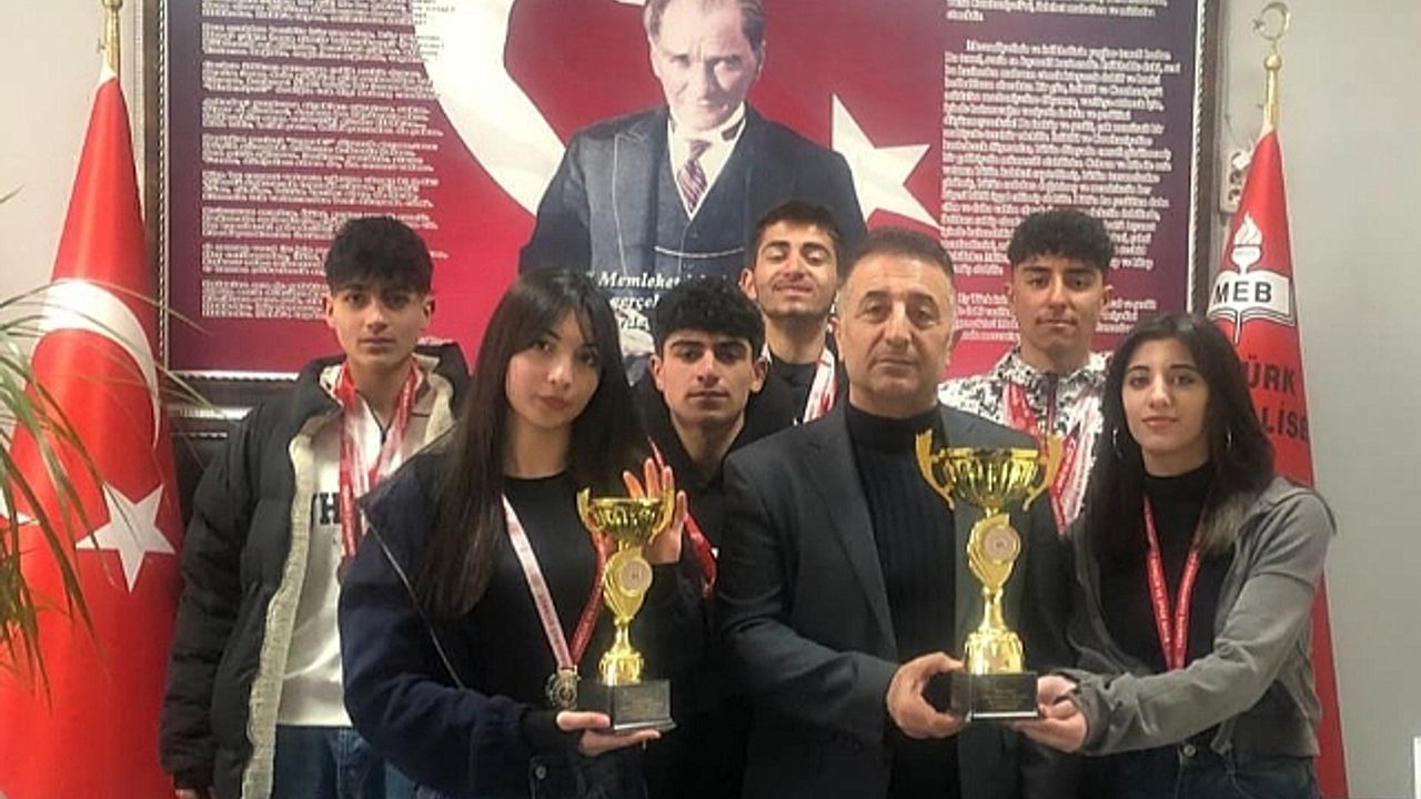 Öğrencileri müsabakalara hazırlayan Beden Eğitimi Öğretmeni Hülya Uslu, öğrencilerin almış olduğu kupa ve madalyalarla Okul Müdürü Suat Vural''ı ziyaret ederek sevinçlerini paylaştılar.