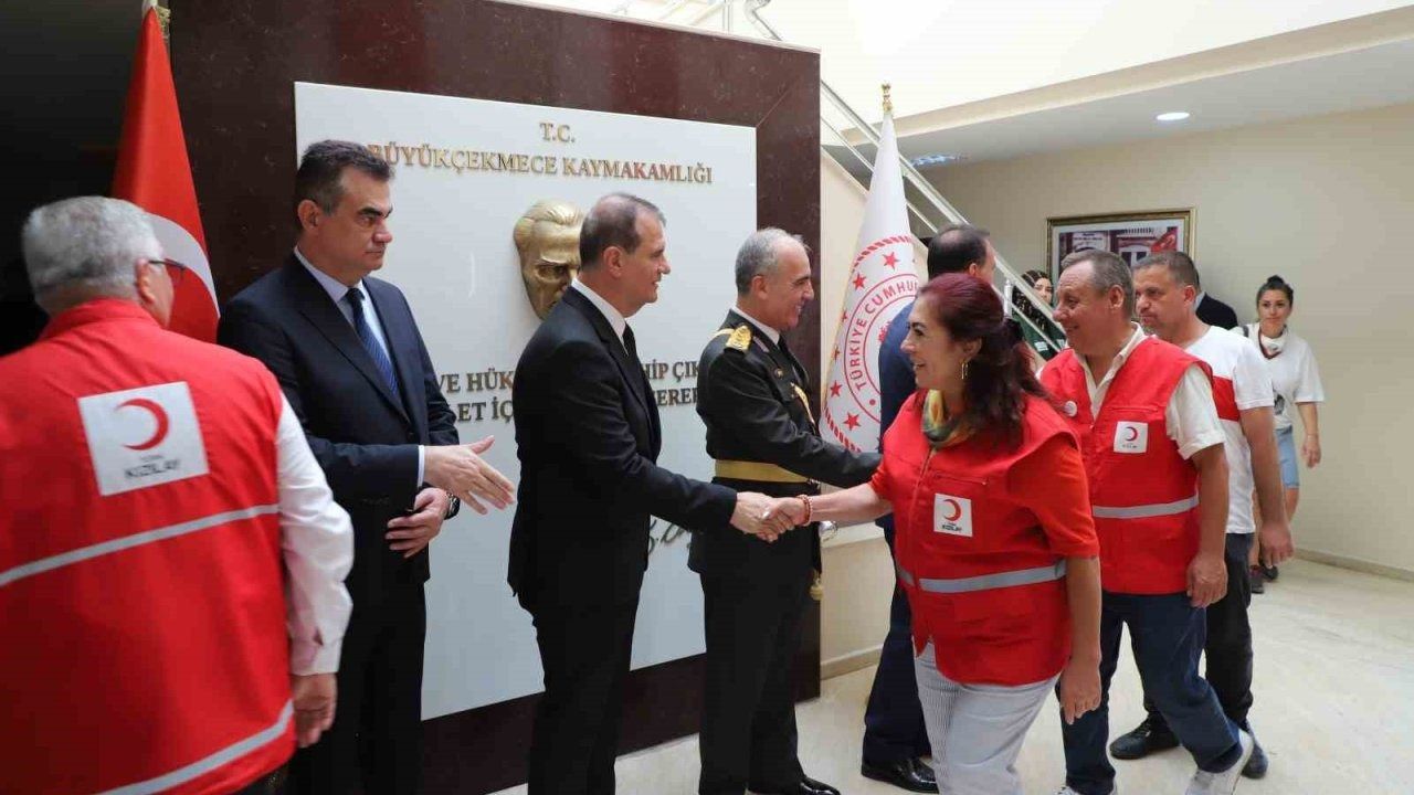 Büyükçekmece"de 30 Ağustos Zafer Bayramı"nın 103"inci yıl dönümü kutlamaları için ilk tören Kaymakamlık Meydanı Atatürk Anıtı"nda yapılan çelenk takdimi ile başladı.
