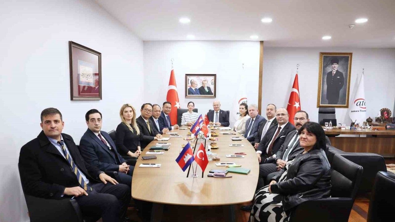 Kamboçya Ticaret Bakanı Cham Nimul, ATO Başkanı Gürsel Baran’ı makamında ziyaret etti. Bakan Nimul, ziyarette yaptığı konuşmada, iki ülke arasındaki ticari ve ekonomik iş birliğini geliştirmek ve kolaylaştırmak amacıyla Türkiye-Kamboçya Karma Ekonomik Komisyonu’nun kurulduğunu hatırlatarak, 4. Karma Ekonomik Komisyon toplantısı için Türkiye’de bulunduklarını ve bu süreçte çevre, enerji ve ticaret alanlarında iş birliklerini geliştirmek amacıyla görüşmeler yaptıklarını aktardı.