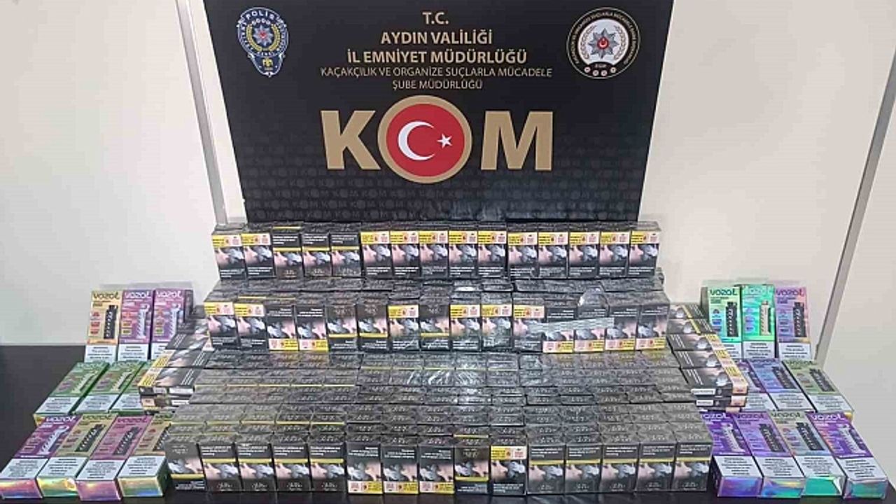 Aydın''ın Efeler ilçesinde İl Emniyet Müdürlüğü KOM Şube Müdürlüğü ekipleri tarafından bir eve yapılan operasyonda 400 paket gümrük kaçağı sigara ve 20 adet elektronik sigara ele geçirildi.