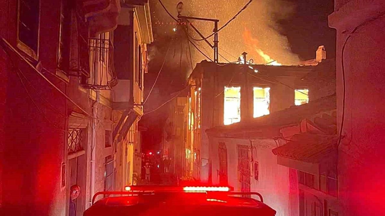 Yangının iki metruk bina ile bitişik durumda olan evlere sıçramasından endişeli olan mahalle sakinleri korku dolu anlar yaşadı.
