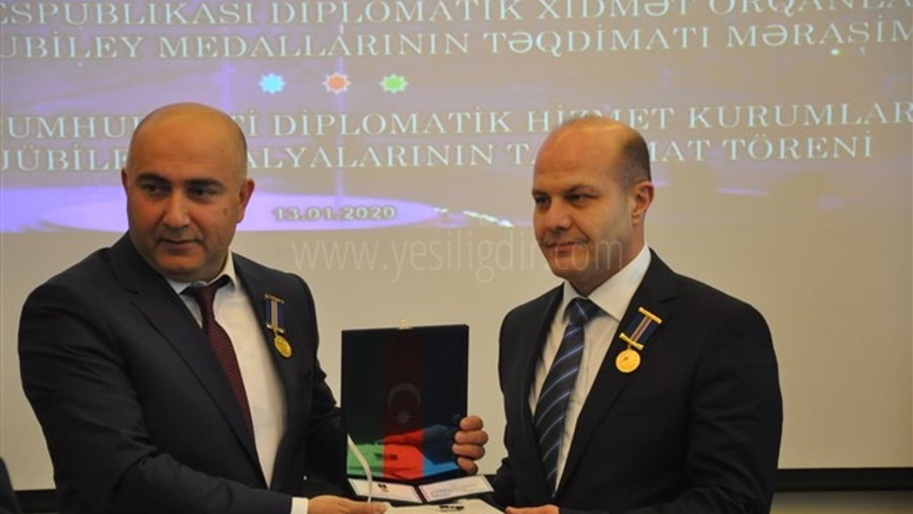 Azerbaycan Kars Başkonsolosluğunda Azerbaycan Cumhuriyetinin Diplomatik Hizmet Kurumlarının Yaranmasının 100''üncü yılı münasebetiyle onur madalyası takdim töreni düzenlendi. Törende Kars Valisi Türker Öksüz''e, Erzurum Büyükşehir Belediye Başkanı Mehmet Sekmen''e, Iğdır- Azerbaycan Dil, Tarih ve Kültür Birliğini Yaşatma ve Destekleme Derneği Başkanı Ziya Zakir Acar''a ve Yeşil Iğdır ile 15 Temmuz gazeteleri sahibi ve Küresel Gazeteciler Konseyi Iğdır İl Temsilcisi Cabbar Şıktaş''a madalyaları Azerbaycan Başkonsolosu Nuri Guliyev tarafından takdim edildi.
