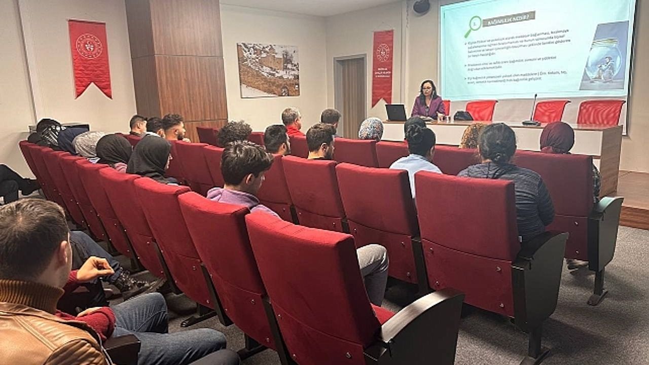 Erzincan''da Yeşilay Danışmanlık Merkezi (YEDAM) ve On Üç Şubat Gençlik Merkezi''nin ortaklaşa düzenlediği bağımlılıkla mücadele seminerinde, tütün, alkol, madde, kumar ve internet bağımlılığına karşı bilinçlendirme eğitimleri verildi.