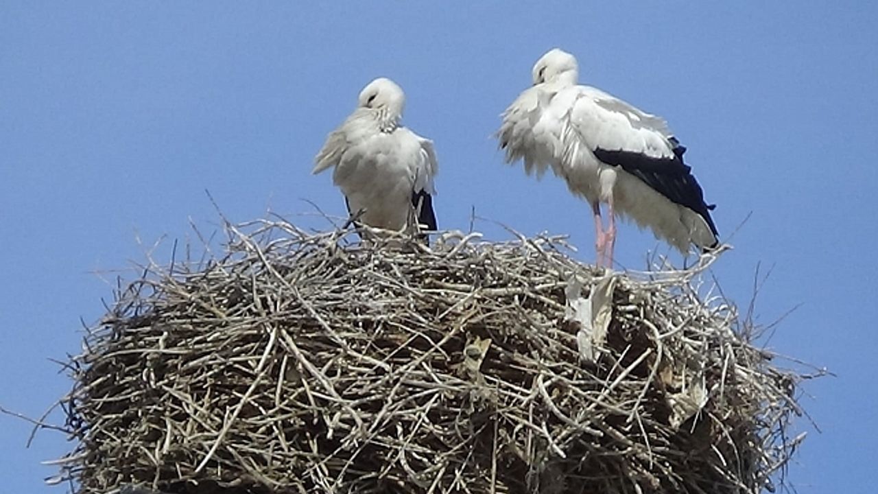 Hava sıcaklığının artmasıyla leylekler Iğdır''a gelmeye ve yuvalarını yapmaya başladı.