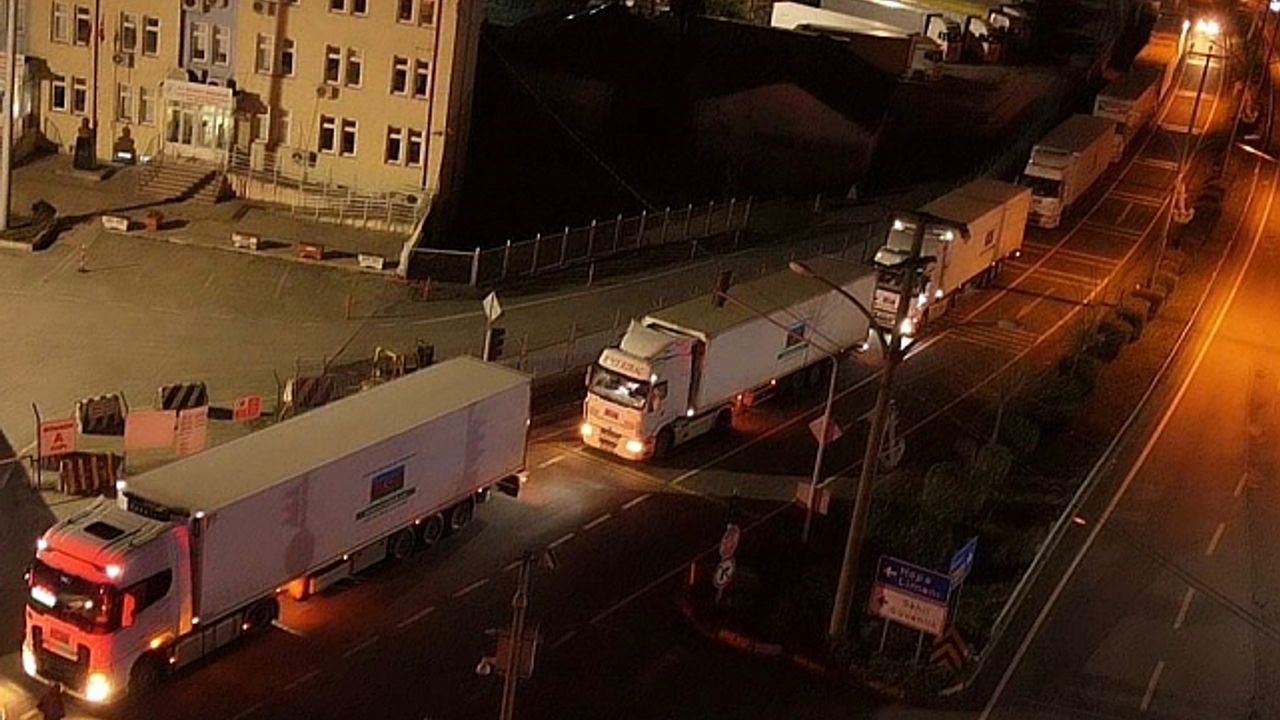 "10 araçla Azerbaycan''dan yola çıktık. Sağ olsun Azerbaycanlı kardeşlerimiz, Suriye''deki Müslüman kardeşlerimizi düşünerek bu yardımı organize etti. AFAD ekipleri ve Sarp Gümrük yetkilileri burada bizi karşıladı. Yaklaşık 36 saattir yoldayız."