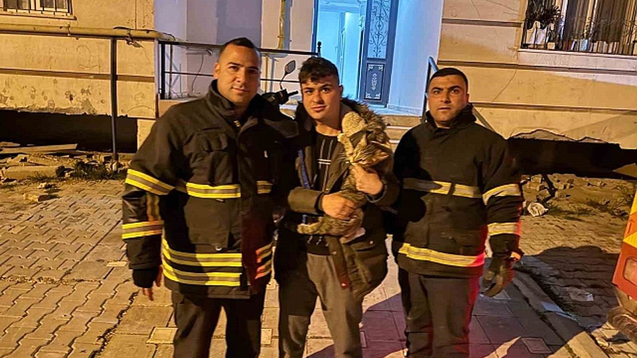 Hatay''ın Antakya ilçesinde balkonda mahsur kalan kediyi itfaiye ekipleri kurtardı.