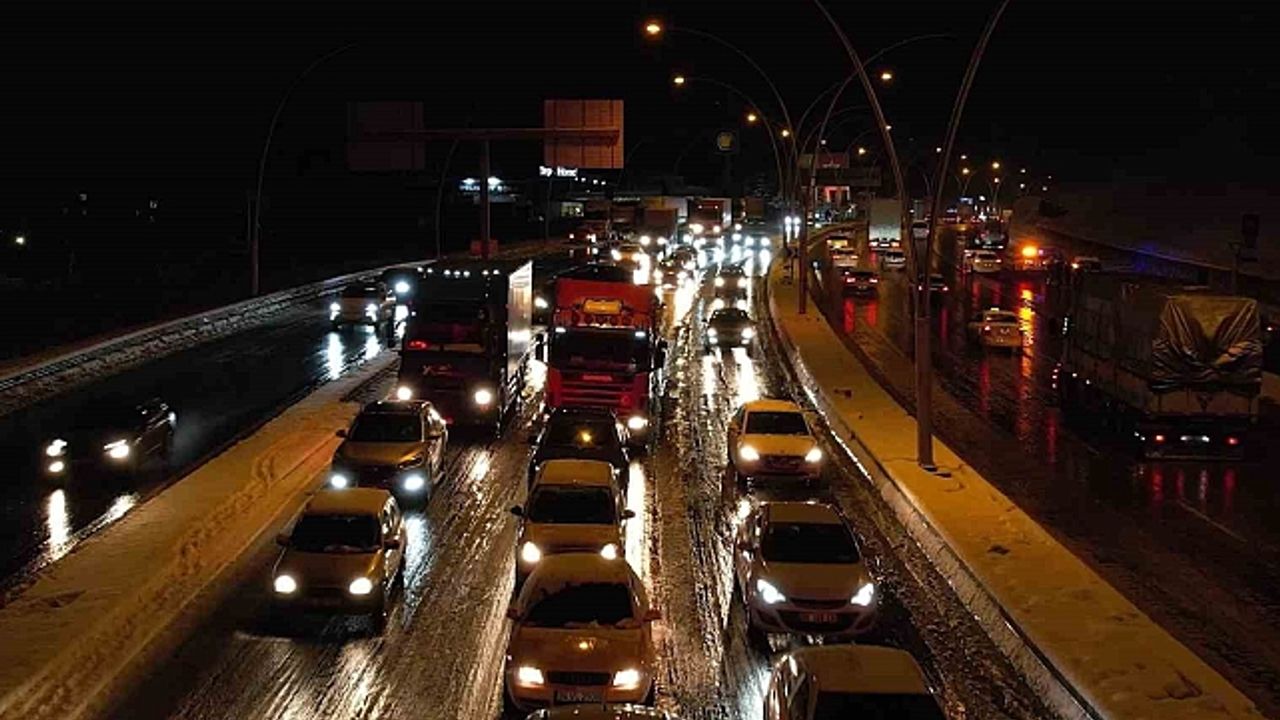 Ankara''nın Çankaya ilçesinde etkili olan kar yağışı ve trafik kazası ulaşımı felç etti. Ümitköy mevkiinde meydana gelen kaza nedeniyle trafik durma noktasına gelirken, yoğun kar yağışı sürücülere zor anlar yaşattı.