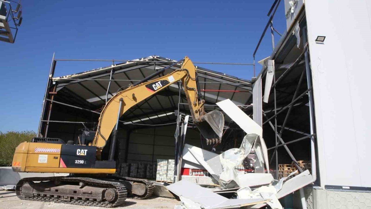 Nilüfer Belediyesi yıkım ekipleri, Başköy Mahallesi"nde 2 bin 400 metrekare alanda faaliyet gösteren ruhsatsız depoyu yıkarak, kullanılamaz hale getirdi.