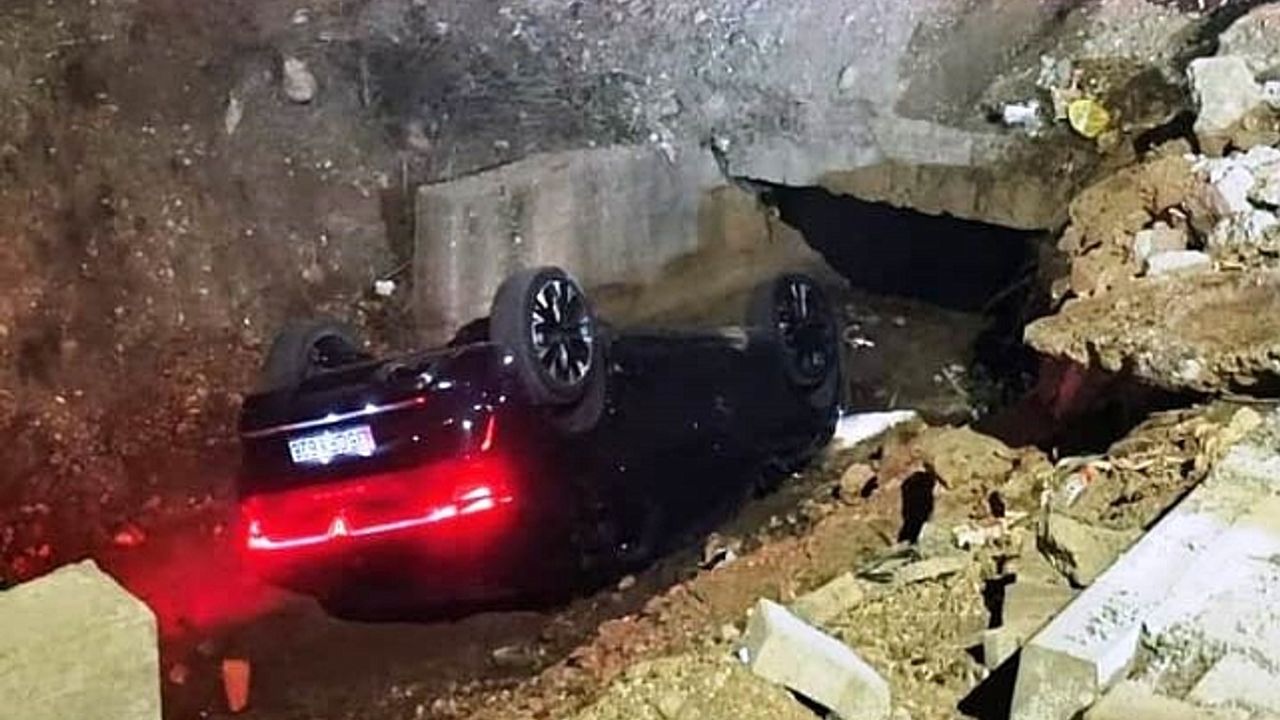 Batman''da otomobil, bir sitenin önündeki su kanalına uçtu. Kazada ters dönen araçtaki sürücü yaralandı.