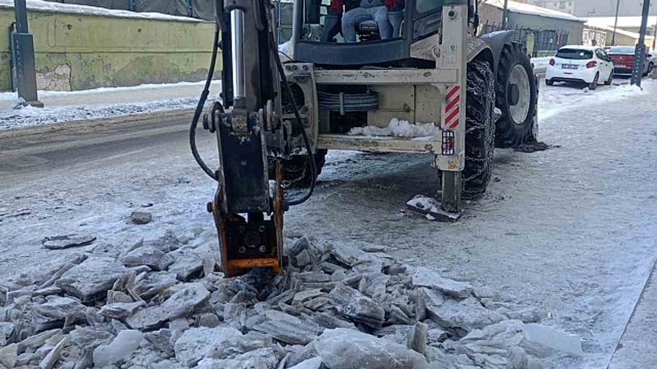 İş makineleri ve belediye işçilerinin şehir merkezinde birlikte yürüttüğü hummalı buz temizliği çalışmaları kesintisiz devam ederken, vatandaşlar termometreleri çatlatan kuru soğuklara rağmen gerçekleştirilen çalışmalardan dolayı memnuniyetlerini dile getirdiler.