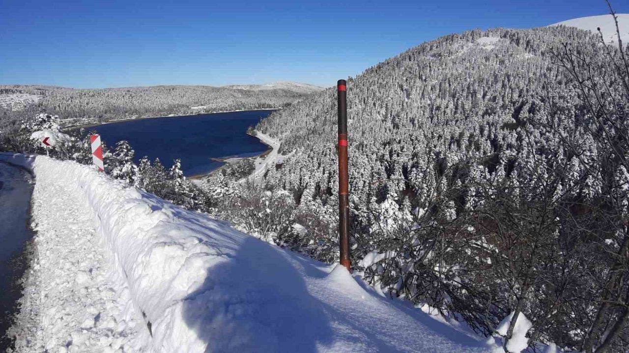 Bolu'da günlerdir aralıksız süren kar yağışıyla beyaza bürünen Abant Gölü, kartpostallık manzarasıyla yerli ve yabancı turistleri büyülerken, ziyaretçiler 1 metreyi bulan kar örtüsü eşliğinde kışın tadını çıkarıyor.