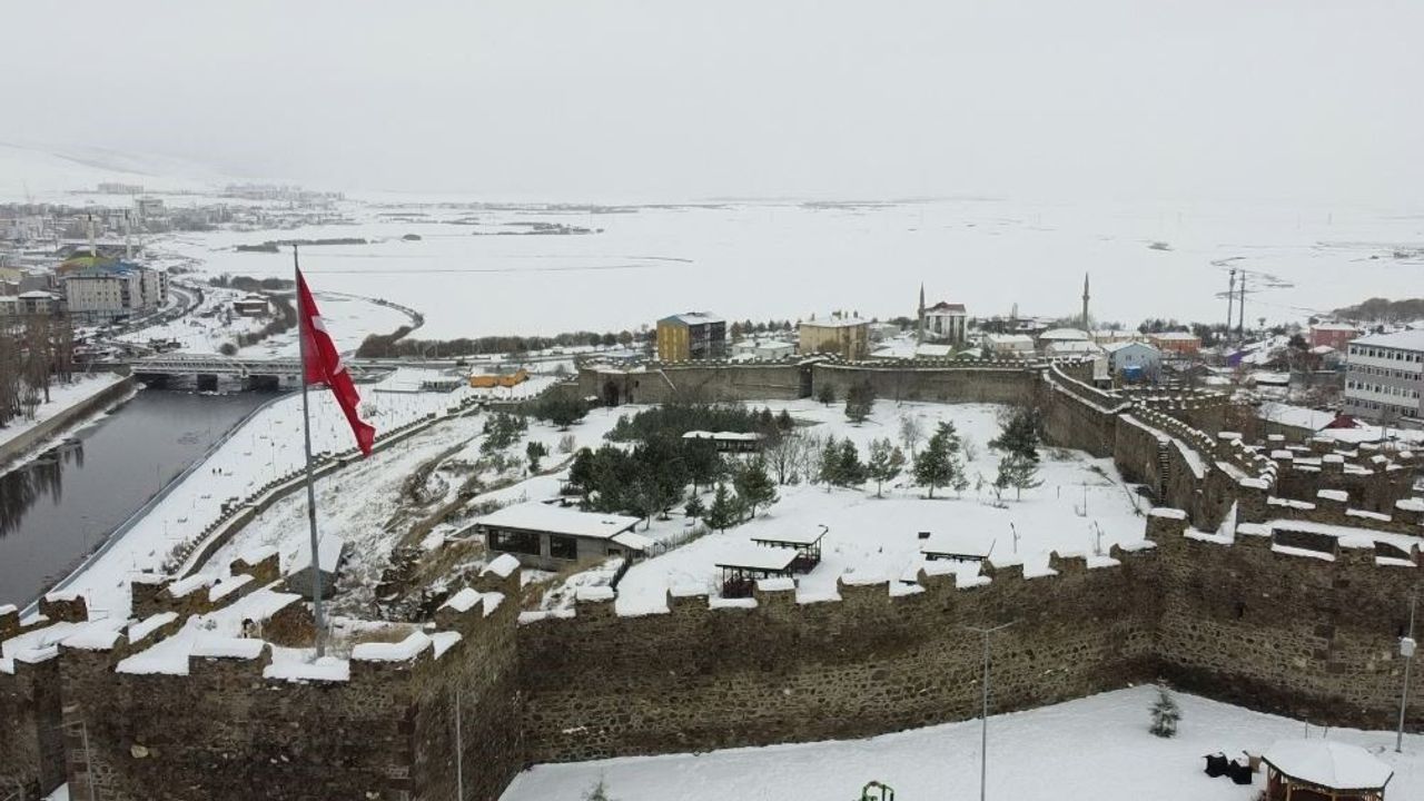 Kalenin beyaz örtü ile kaplanmış hali havadan görüntülendi.