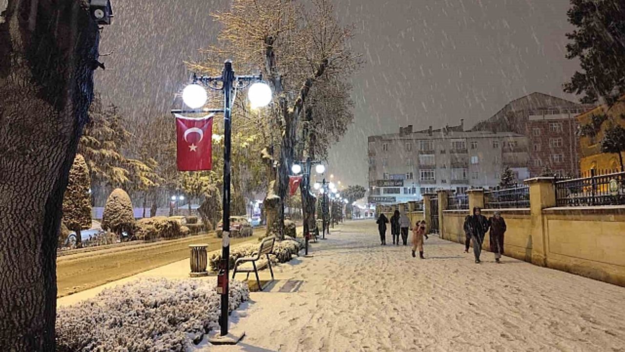 Yozgat''ta gece boyunca lapa lapa yağan kar, şehrin ışıklarıyla birleşerek kartpostallık görüntüler oluşturdu. Karayolları ekipleri, yoğun çalışma temposuyla yolları açarken, vatandaşlar da karın keyfini doyasıya çıkardı.