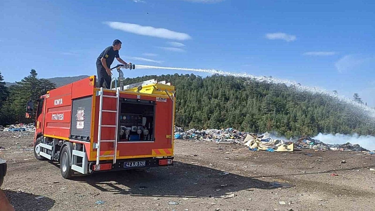 Konya''nın Beyşehir ilçesine bağlı Huğlu Mahallesi''nin evsel atıklarının döküldüğü çöp toplama merkezinde çıkan yangın söndürüldü.