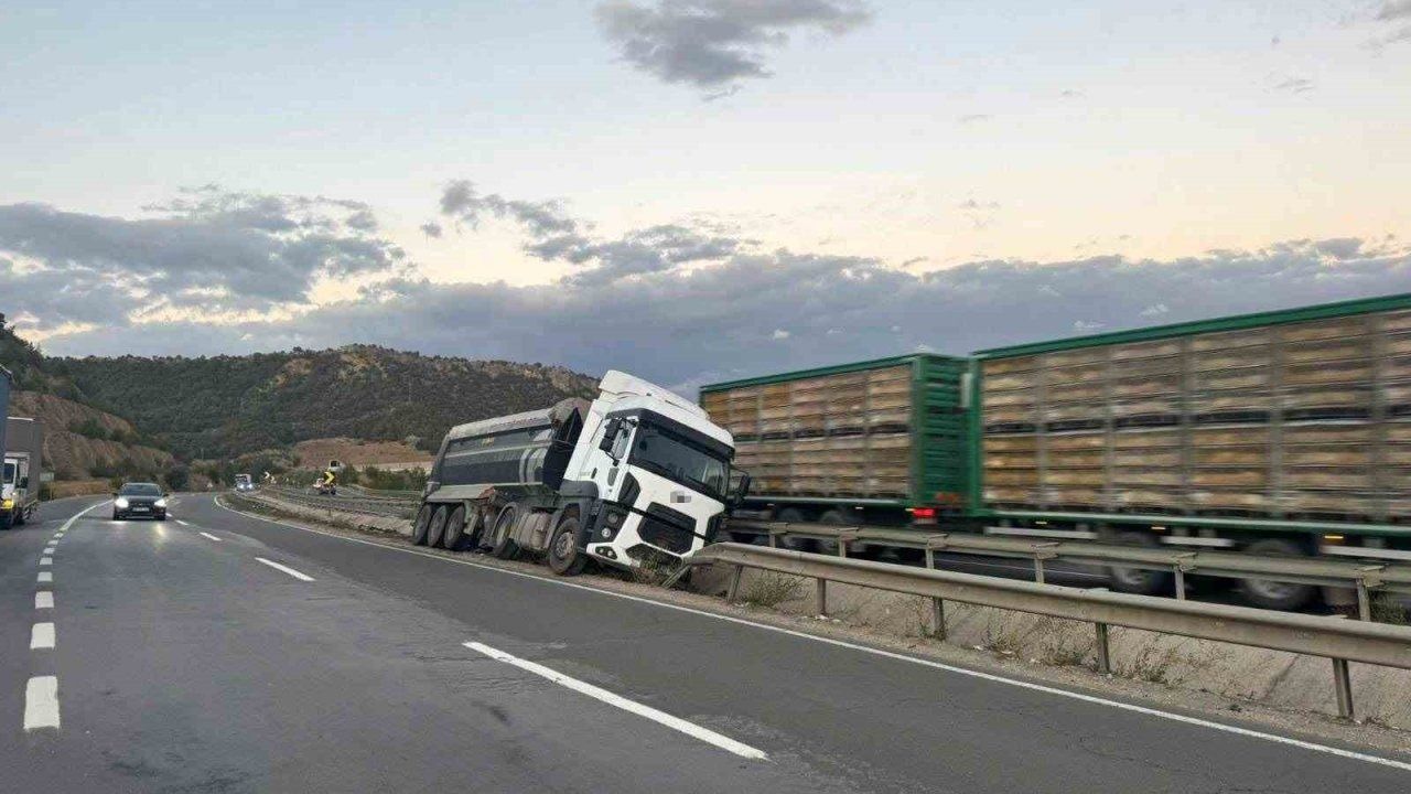 Bilecik"te seyir halinde kontrolden çıkan tır orta refüje çarparken, sürücüsü yaralandı.