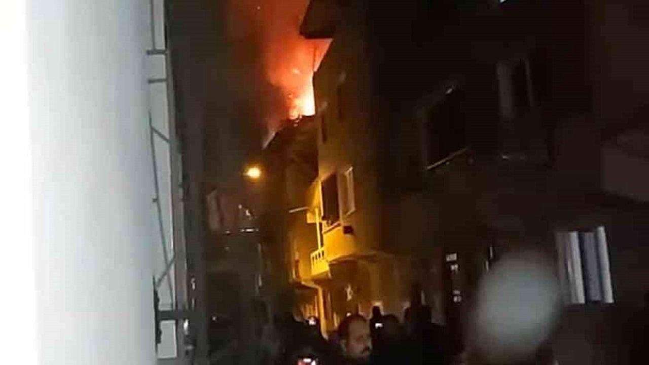 Bursa''da 3 katlı binanın çatı katında başlayan yangın korku dolu anlar yaşattı. Yangını gören vatandaşlar sokağa akın etti. O anlar kamerada.