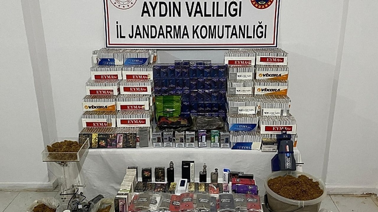 Aydın İl Jandarma Komutanlığı Kaçakçılık ve Organize Suçlarla Mücadele Şube Müdürlüğü ve Kuşadası İlçe Jandarma Komutanlığı ekiplerince sigara kaçakçılığına yönelik koordineli çalışma gerçekleştirildi. Edinilen bilgiye göre ekipler, Kuşadası ilçesi Güzelçamlı Mahallesi''nde U.Y. isimli şüpheli şahsın işyerine baskın düzenledi. Yapılan adli aramada piyasa değeri yaklaşık 1 milyon 125 bin TL olan 139 bin 440 adet içi tütün doldurulmuş makaron, toplam 127 kilogram poşetlenmiş halde 265 parça nargile tütünü, 16 kilogram kıyılmış tütün, bin 375 adet sigara, 40 adet puro, 40 adet elektronik sigara, 12 adet sigara sarma makinası ele geçirildi. Yakalanarak gözaltına alınan şüpheli hakkında başlatılan adli ve idari süreç devam ediyor.