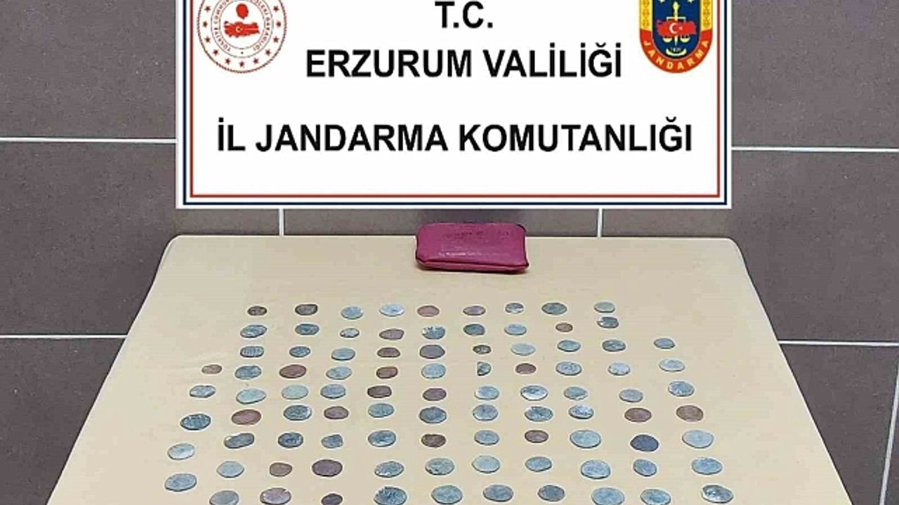 Erzurum İl Jandarma Komutanlığı Kaçakçılıkla Mücadele ve Organize Suçlarla Mücadele Şube Müdürlüğü ile Aşkale İlçe Jandarma Komutanlığı tarafından gerçekleştirilen operasyonla Bizans dönemine ait 104 adet sikke ele geçirildi.